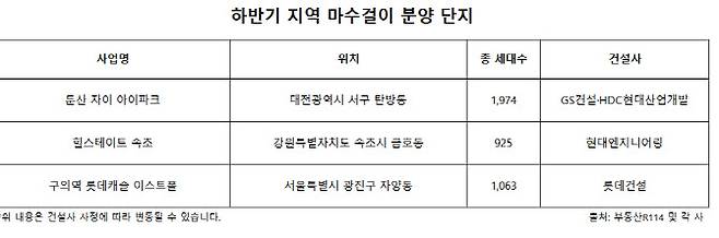 [이데일리 이윤화 기자] 전국적으로 하반기 7만9000여 가구가 공급될 예정이다. 대형 건설사의 브랜드 아파트 분양이 대거 예정돼 있어 눈길을 끈다. 상반기 공급이 없던 지역에서 마수걸이 분양도 이어진다.