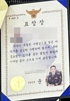 경찰청장 표창장 '윤희근 사진' 논란…경찰 "수여 중단"