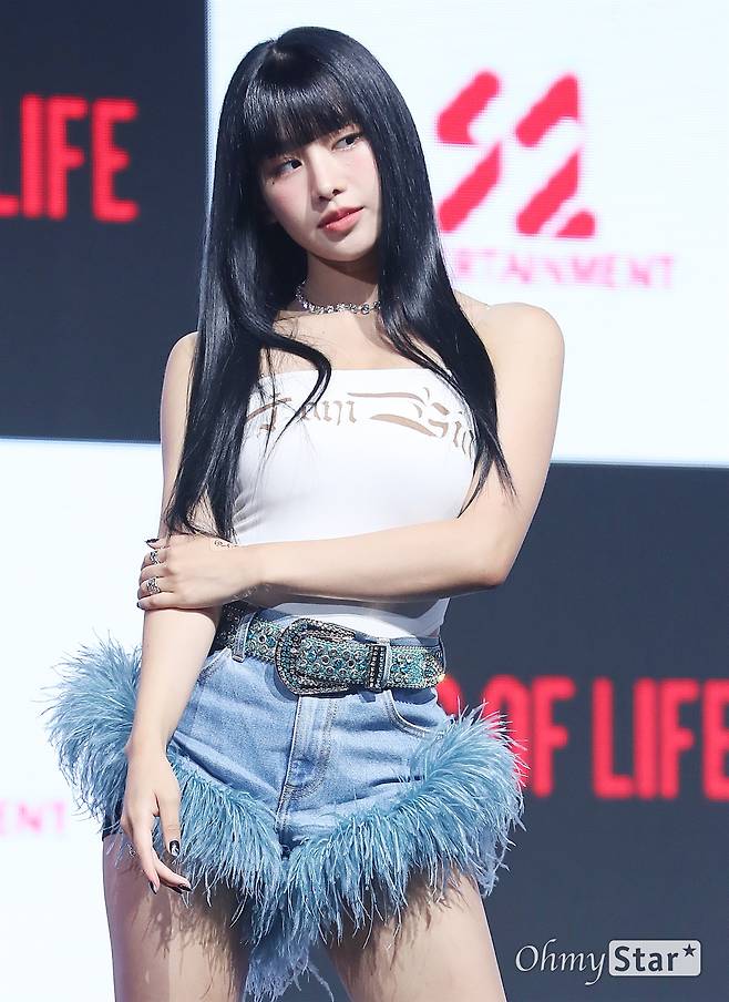 KISS OF LIFE(키스오브라이프. 나띠, 쥴리, 벨, 하늘)의 나띠가 5일 오후 서울 광진구의 한 공연장에서 열린 첫 번째 미니 앨범 < KISS OF LIFE > 발매 데뷔 쇼케이스에서 포토타임을 갖고 있다. KISS OF LIFE라는 팀명은 '인공호흡'이라는 원 의미를 바탕으로 음악을 통해 자유로움을 추구하며 진실한 본연의 모습인 자아를 찾는다는 뜻을 담고 있다.