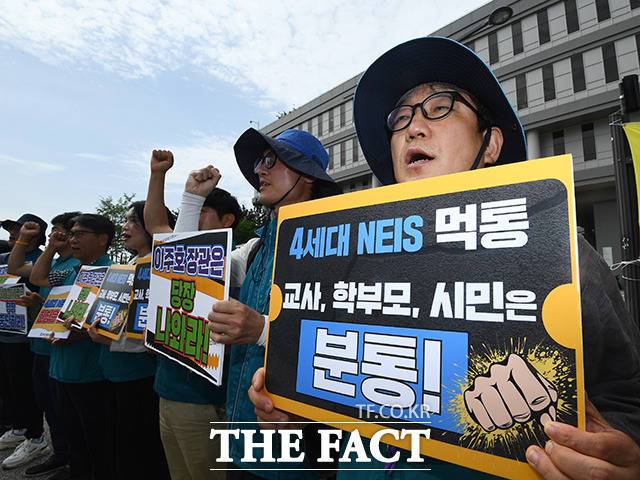 교육부 항의 방문한 전교조 "나이스(NEIS) 사태 해결하라" [TF사진관]