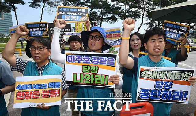 [더팩트ㅣ세종=이동률 기자] 전국교직원노동조합이 6일 오전 세종시 정부세종청사 교육부를 항의 방문해 교육행정 시스템 나이스(NEIS) 사태 해결을 촉구하고 있다.