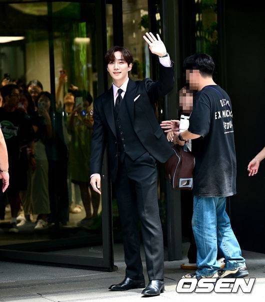 이준호가 출근하며 팬들과 취재진을 향해 인사하고 있다. 2023.07.06 / dreamer@osen.co.kr