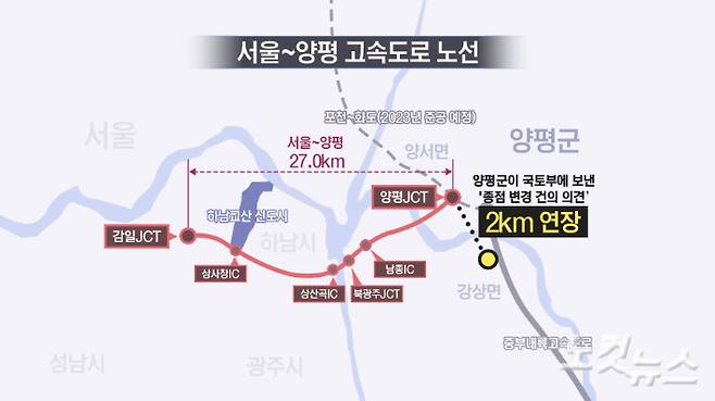 김 의원은 "10년 넘게 두물머리 쪽으로 고속도로가 계획이 돼 있었는데 왜 갑자기 이쪽으로 바뀌었는지, 국토부장관이 바뀌고 양평군수가 바뀌고 그리고 전 양평군수였던 국회의원이 국토위로 상임위가 바뀐 직후 이렇게 갑자기 바뀌었는지 끝까지 캐묻겠다"고 말했다.
