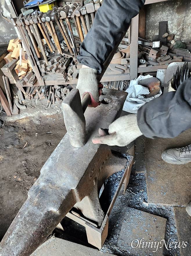 대장간이 있으므로 해서 그 이름만큼은 아직 살아있는 거다. 말은 사람들끼리 주고받을 때 의미가 있다. 산에 난 좁은 길이 그렇듯이 말도 쓰지 않으면 사라지게 마련이다. 대장간에서 사용하는 수많은 도구의 이름, 대장간에서 만들어내는 온갖 연장들의 우리말 이름은 대장간이 갖는 또 다른 가치이다.