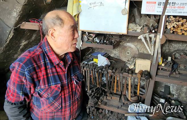 | ▲ 송종화 장인이 작업을 마치고 대장간 내부의 물건들을 바라보고 있다. 2023년 1월 19일 인천 <인일철공소>. |