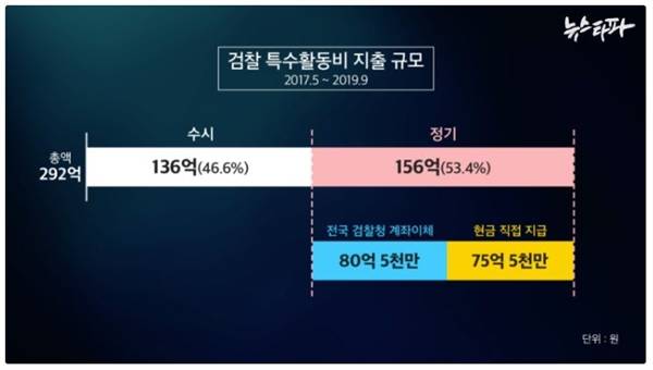 정기지급분을 제외하면 '수시사용분'이 남는다. 단체는 이 돈이 "검찰총장 통치자금"이라고 봤다. 해당 금액은 29개월 동안 136억(전체 292억원의 46.6%)원에 달한다. 하 변호사는 "검찰총장이 누구에게 얼마를 줄지를 정한다, 한 달 평균 4억 6000만원 이상을 마음대로 쓸 수 있는 것"이라고 지적했다.