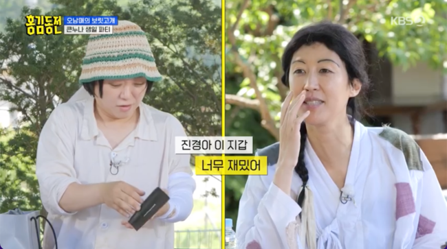 홍진경은 찐 명품 지갑을 선물해 모두의 환호를 받았다.