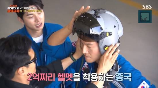 김종국은 헬멧에 관심을 보였다. 조종사는 "헬멧이 2억 정도"라고 소개해 김종국과 이이경을 경악하게 만들었다.