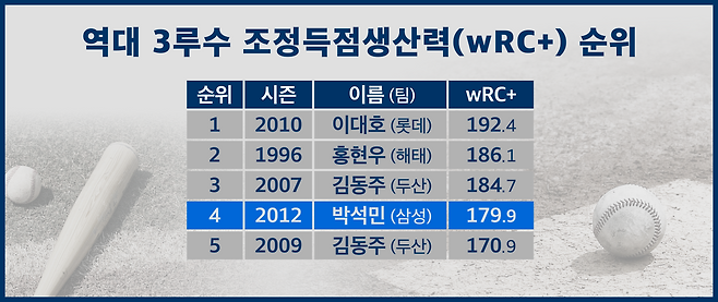 10년 전에는 삼성도 뛰어난 3루수를 보유하고 있었습니다. 주인공은 삼성왕조의 주역 중 한 명인 박석민입니다. 박석민은 매년 빼어난 출루율과 준수한 장타력으로 중심 타선의 한 자리를 책임졌습니다.