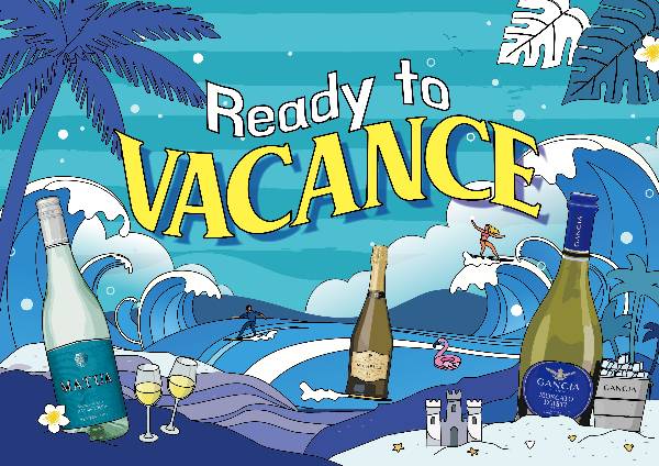 레디 투 바캉스 프로모션 와인은 ▲1865 셀렉티드 빈야드 소비뇽블랑 ▲간치아 모스카토 다스티 ▲까사 콘차 카베르네 소비뇽 ▲꼬든 네그로 브뤼 ▲도멘 생 미셸 브뤼 ▲레이다 레세르바 소비뇽블랑 ▲마투아 소비뇽블랑 ▲트라피체 메달라 카베르네 소비뇽 ▲펜폴즈 맥스 쉬라즈 ▲폴로져 샹파뉴 브뤼 리저브 등 총 10종이다.