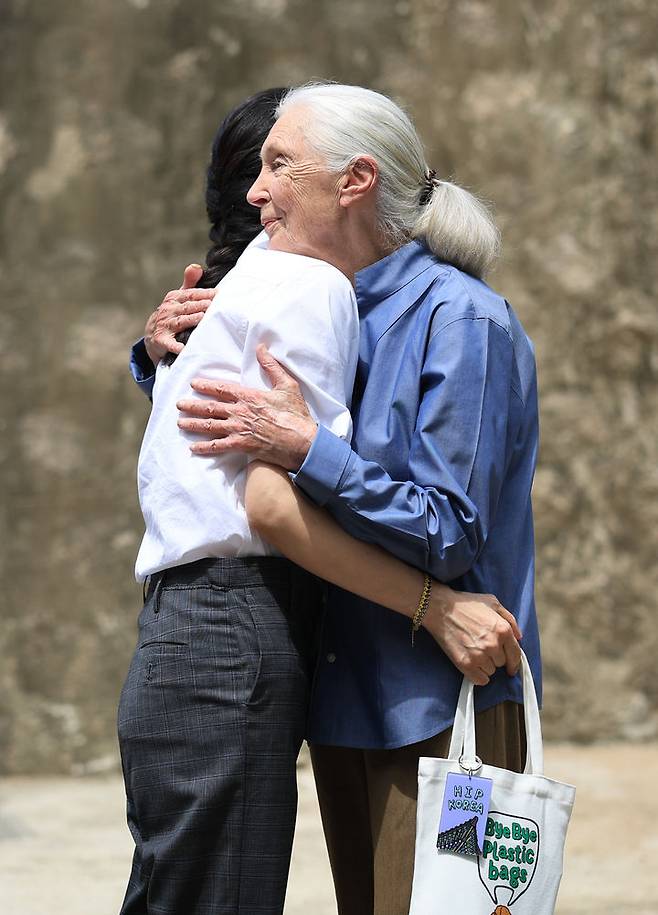 제인 구달 박사와 포옹하는 김건희 여사