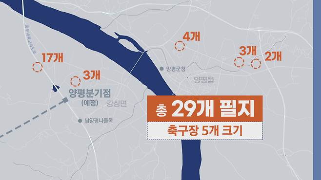 양평군 강상면에 20개 필지가 있고, 강상면과 맞닿은 양평읍에 9개 필지가 있습니다.