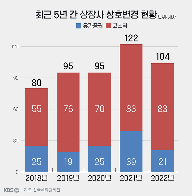 이름 바꿨다면 관심이 갑니다. 동네 빵집 간판만 바뀌어도 주인 달라졌나 싶습니다. 회사도 마찬가지죠. 한국예탁결제원은 올해 상반기 64개 상장사(코스피 20곳, 코스닥 44곳)가 상호를 바꿨다고 밝혔습니다. 롯데제과는 56년간 쓰던 사명을 올해 4월 '롯데웰푸드'로 바꿨습니다. 1988년 등장해 친숙한 이름인 쌍용자동차는 이제 'KG모빌리티'라고 불러야 합니다.