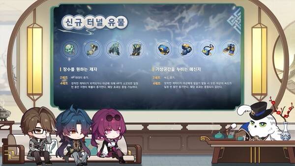 신규 터널 유물은 '장수를 원하는 제자'와 '가상 공간을 누비는 메신저'다. 장수를 원하는 제자는 HP 최대치가 증가하고 4세트 착용 시 특정 조건으로 HP가 소모될 시 치명타 확률이 증가하는 효과를 가졌다.