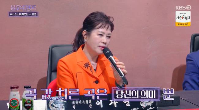 ‘당신의 의미’는 국민적인 추임새로도 유명하다. 이자연은 “중간에 비워둔 곳을 온 국민이 메꿔 주셨다. 선배님이 얼마나 선견지명이 있으셨나. 감사하다”라고 말했다.
