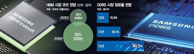 생성형 인공지능(AI) 시장 급성장에 AI용 서버에 필수 탑재되는 고대역폭메모리(HBM)와 더블데이터레이트(DDR)5 등 차세대 D램 제품의 개발·양산에 속도를 내 수익성을 극대화할 계획이다.