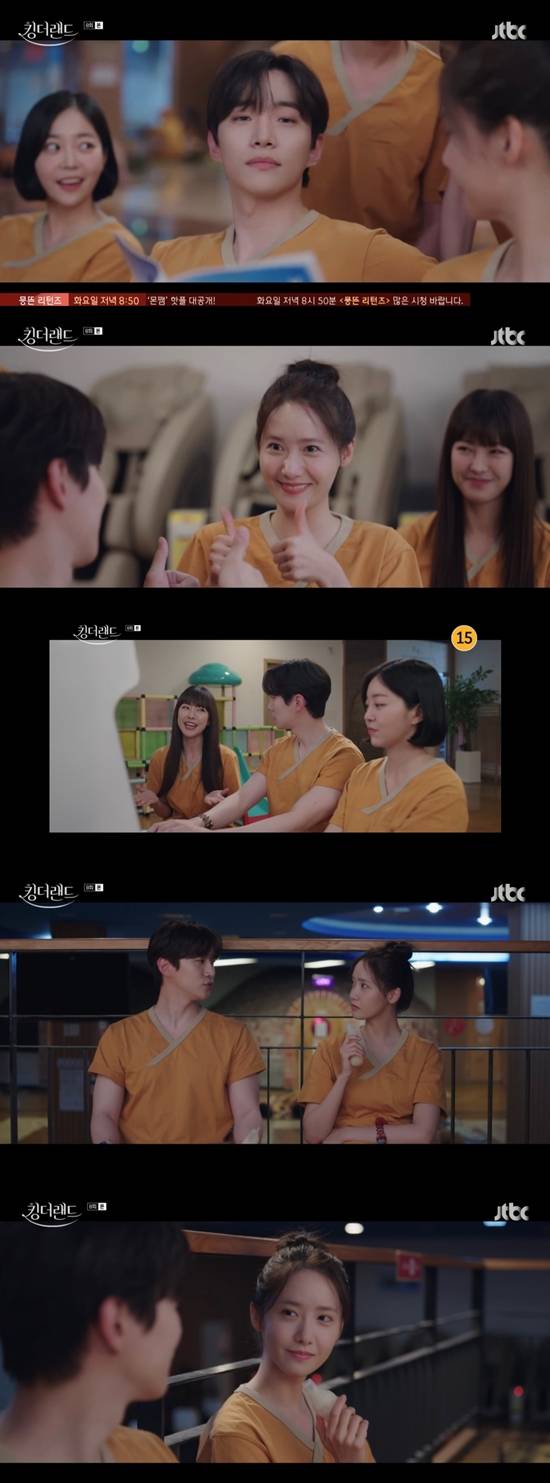 9일 방송된 JTBC 토일드라마 '킹더랜드'에서는 구원(이준호 분)과 천사랑(임윤아)이 입맞춤으로 서로의 마음을 확인한 장면이 전파를 탔다.