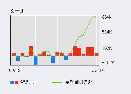 한편 외국인은 이 종목에 대해서 최근 7일 연속 90.2만주 순매수를 하고 있다. 더욱이 전일 외국인이 대량 순매수를 하고 있어 투자자들의 관심이 집중되고 있다.