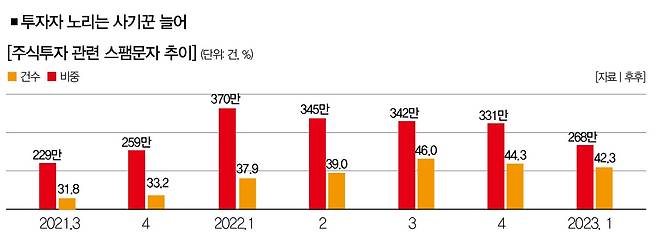 문제는 주식투자의 어려움을 겪고 있는 투자자에게 접근해 돈을 노리는 사기꾼들이 증가하고 있다는 점이다. 주식 사기의 대명사가 된 주식 리딩방은 이제 익숙한 존재가 됐다. 수법은 여전하다. 높은 투자 수익률로 투자자를 유혹해 수백에서 수천만원의 회원비를 요구한다. 쉽게 수익을 올릴 수 있는 급등주나 유망주를 알려준다는 명목이다.