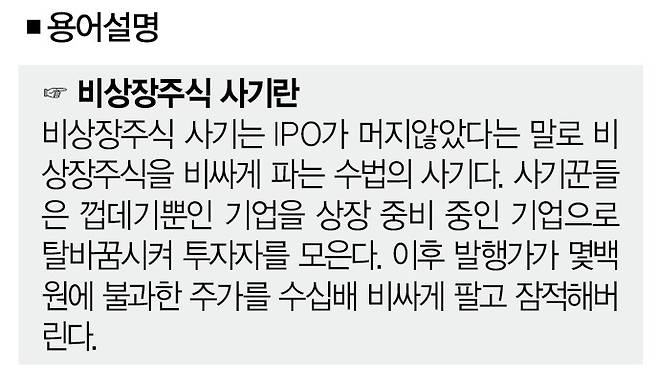 ![비상장주식 사기가 성행하고 있지만, 사정당국과 금융당국의 대응은 여전히 미온적이라는 비판이 일고 있다.[사진=뉴시스]](https://img2.daumcdn.net/thumb/R658x0.q70/?fname=https://t1.daumcdn.net/news/202307/10/thescoop1/20230710110554356ttxq.jpg)