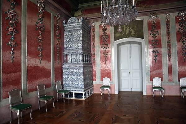 | ▲ 룬달레 궁전 내부의 화려한 모습. 구석에 도자기로 만든 난방시설이 보인다. 18세기에 현재와 비슷한 모습의 난로가 있다는 게 놀랍다. |
