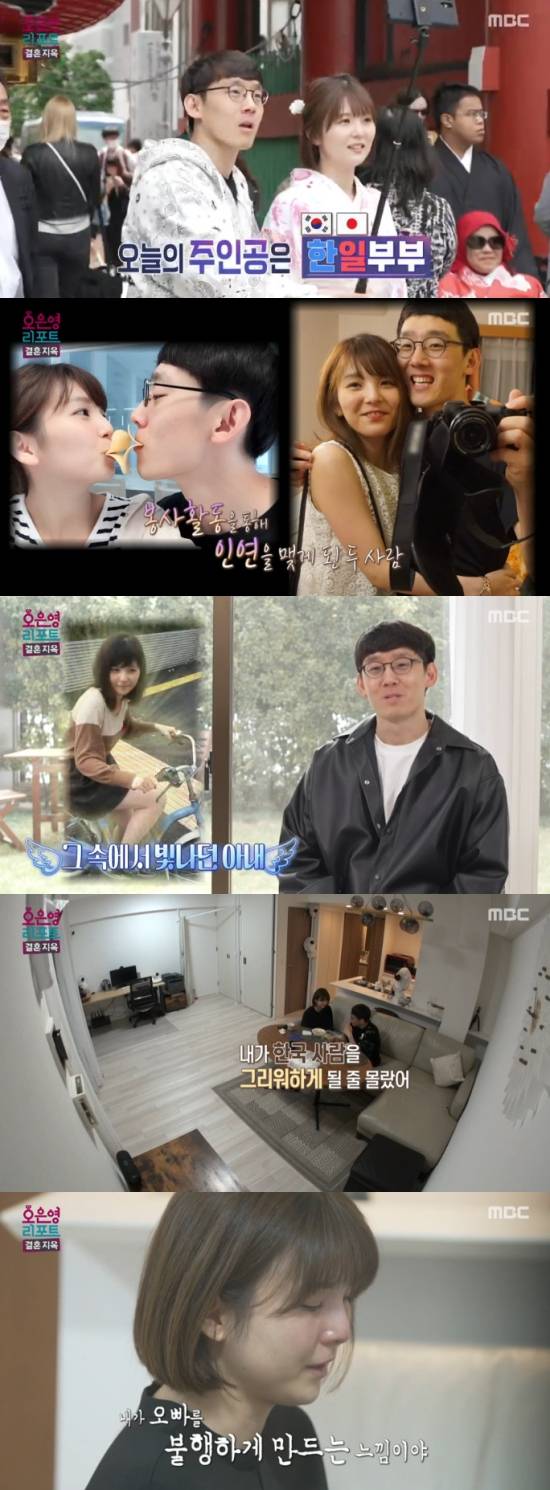 특히 한국인 남편은 "내가 한국 사람을 이렇게 그리워하게 될지 몰랐다. 그러다 보니까 우울증이 안 올 수가 없다"라며 향수병을 느끼고 있었고, 일본인 아내는 "나 때문에 친구랑 못 만나고 오빠를 불행하게 만드는 느낌이다"라며 눈물 흘렸다.