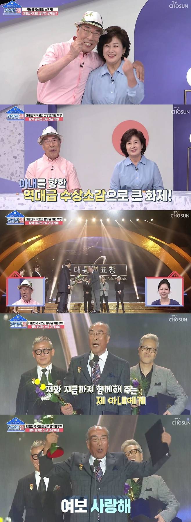 이날 MC들은 김기현, 손영화 부부를 연예계 대표 사랑꾼 부부라고 소개하며 "시상식에서 아내를 향한 역대급 수상 소감으로 화제가 되기도 했다"고 했다.