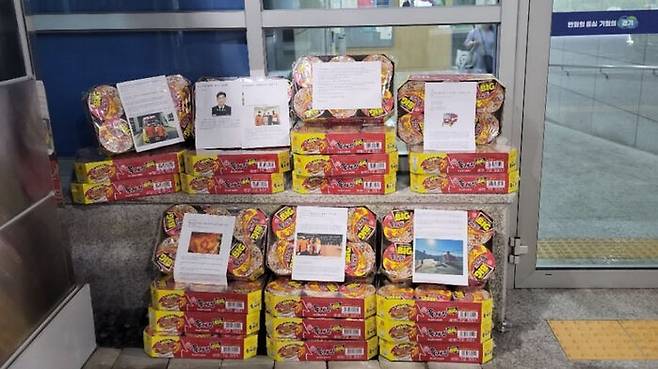 경기도 수원시 한 119안전센터에 최근 소방차 사이렌 소리가 시끄럽다는 민원이 접수된 사실이 알려지자, 인근 주민이 소방관들을 위해 컵라면을 기부하며 응원의 메시지를 전했습니다.