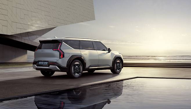 EV9은 기함 다운 차체를 가졌다. EV9의 체격은 길이 5,010㎜, 너비 1,980㎜, 높이1,755㎜, 휠베이스 3,100㎜다. 특히 너비와 휠베이스는 EV9의 덩치가 작지 않음을 강조한다. 수입산 대형 SUV와 비교해도 손색이 없다.