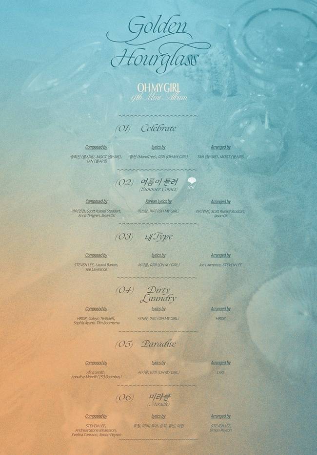 7월 12일 소속사 WM엔터테인먼트는 공식 SNS 채널에 오마이걸 미니 9집 ‘Golden Hourglass’ 트랙리스트를 게시했다.