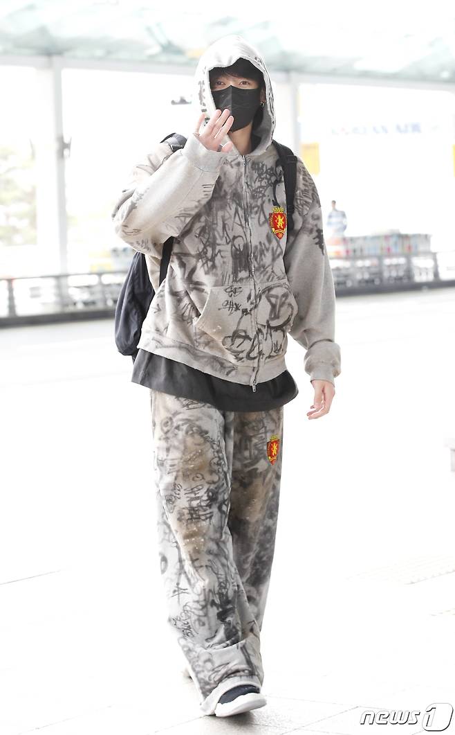 (인천공항=뉴스1) 권현진 기자 = 방탄소년단(BTS) 정국이 해외 일정을 위해 12일 인천국제공항을 통해 미국 뉴욕으로 출국하고 있다.