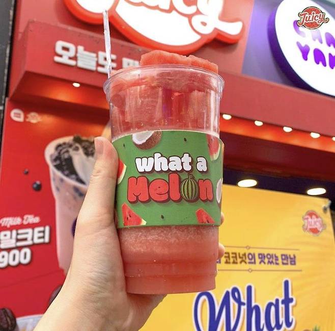 수박 명가 쥬씨. 수박을 조각내어 판매하는 수박 도시락이 매년 인기를 끌고 있다. 쥬씨에서 추천하는 메뉴는 바로 ‘수박 쏙’. 아래는 수박 쥬스로 되어 있고 컵 윗부분엔 조각내 수박이 올려져 있어 수박의 씹는 맛과 쥬스를 한번에 즐길 수 있다.