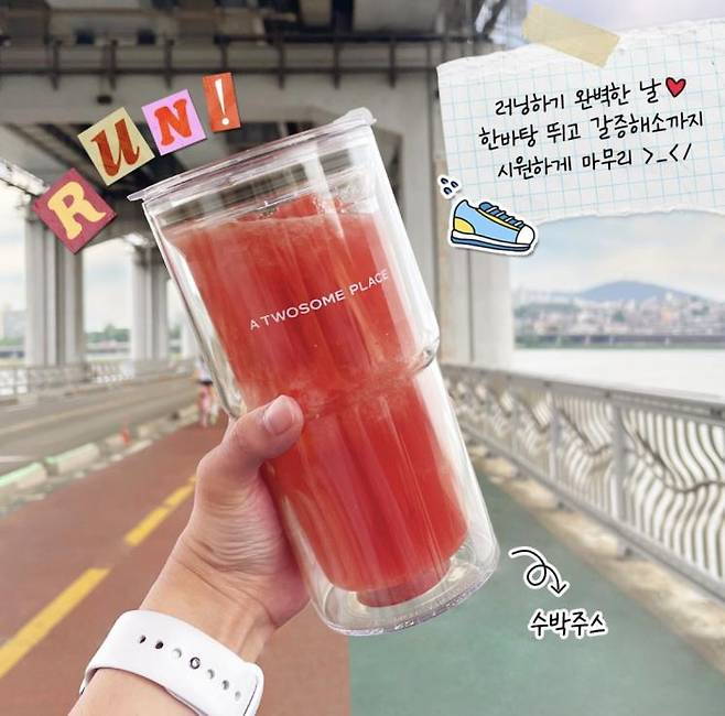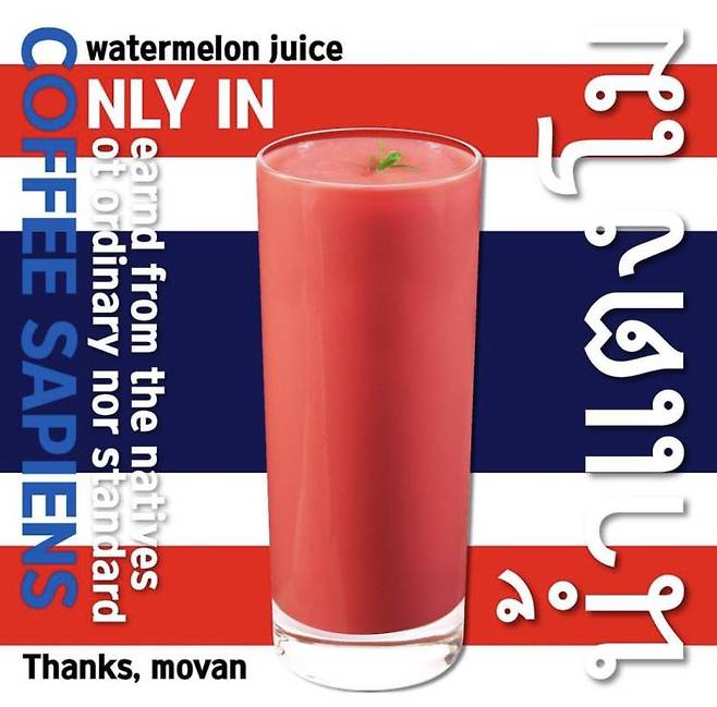 수박주스 잘하기로 유명한 카페 체인 ‘커피 사피엔스’. 음료 개발자가 직접 태국에서 배워온 땡모반 레시피를 활용해 만들었다고. 올해 4월 판매 개시 후 100만잔 이상 판매되었다고 한다.