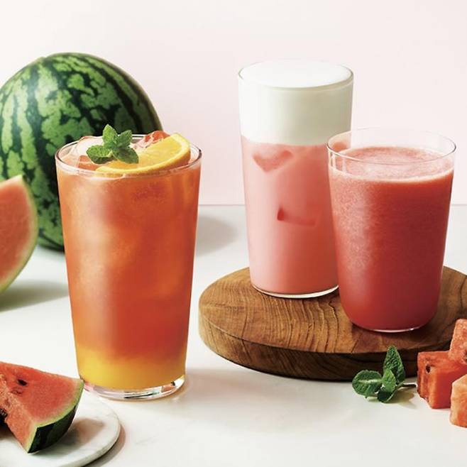100% 국내산 수박만을 갈아 만든 아티제 수박 주스. 수박씨까지 씹히는 리얼 수박 주스다. 아티제는 수박 트로피컬 펀치, 수박 아인슈페너 등 제철 수박을 활용한 다양한 메뉴를 선보인다.