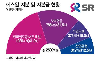 현재 에스알의 자본금은 2500억원이다. 지분 구조는 최대주주인 코레일이 41%를, 나머지 59%는 사학연금(31.5%)·기업은행(15%)·산업은행(12.5%) 등 공적투자자가 나눠서 갖고 있다. 공적투자자가 가지고 있는 59%는 현물출자를 받는 같은 날 주식매수청구권(풋옵션)을 행사한다.