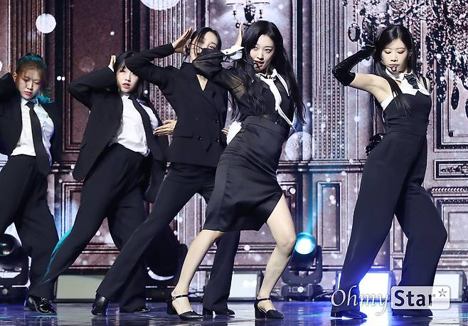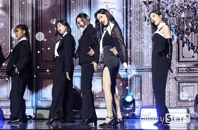 오드아이써클(ODD EYE CIRCLE. 김립, 진솔, 최리)이 12일 오후 서울 광진구의 한 공연장에서 열린 새 미니앨범 < 버전 업(Version Up) > 쇼케이스에서 타이틀곡 'AIR FORCE ONE(에어포스원)'을 선보이고 있다.