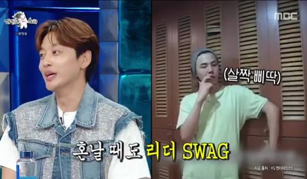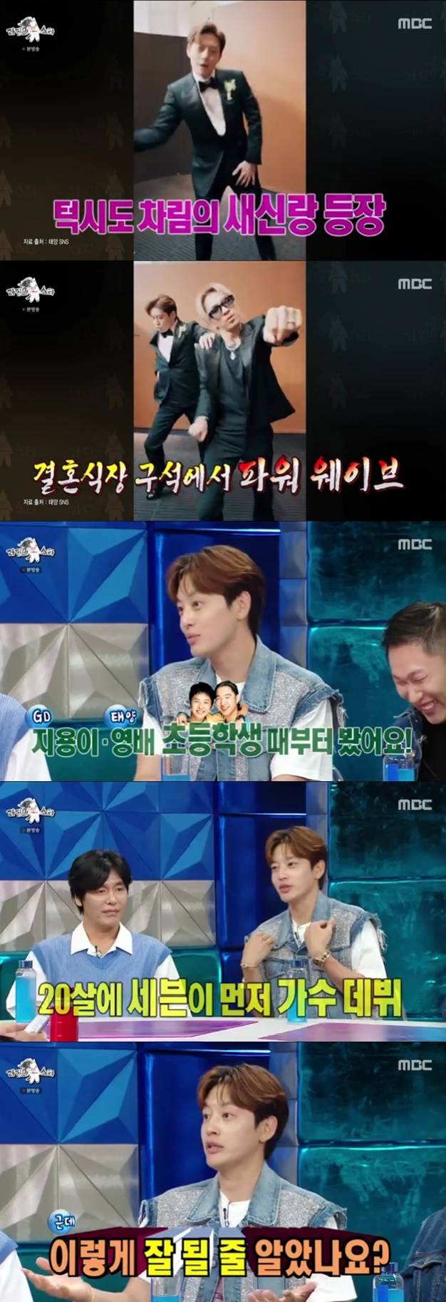 유세윤은 "다른 친구들은 손 모으고 혼나는데 GD만 편한 포즈다"라며 캐치했다. 세븐은 "저 당시에 리더였다"라며 GD 성대모사를 해 주위를 웃겼다.