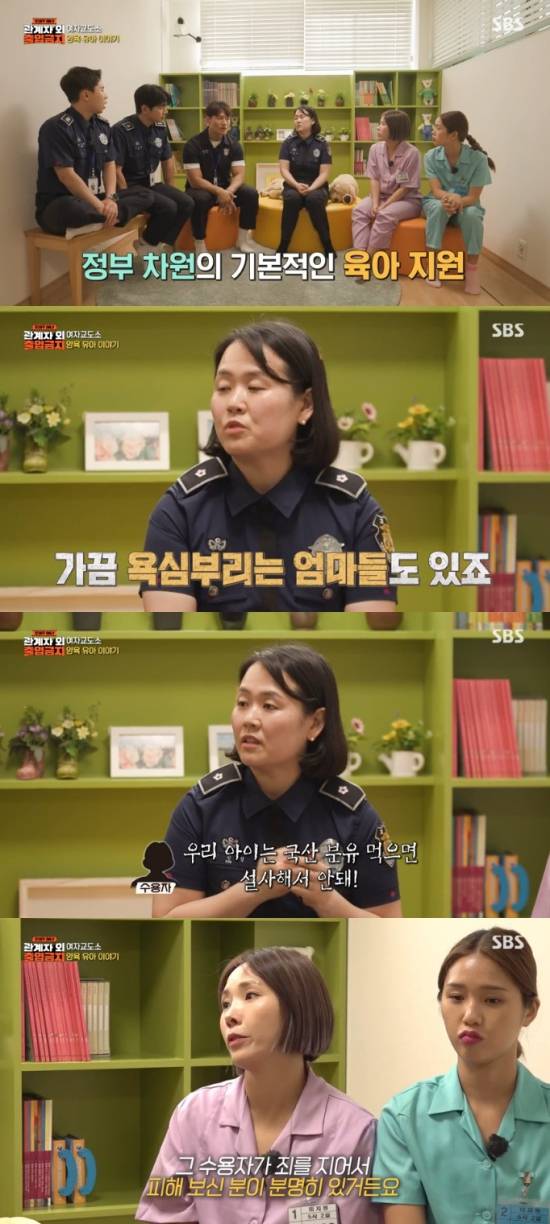 교도관은 기저귀나 분유를 구입하는 방법에 대해 "본인의 영치금으로 월 2회 구입한다. 나라에서 예산이 나오면 지원을 해준다. 실제로 최소한의 의식주는 해결을 해줘야 돼서. 가끔 욕심부리는 엄마들도 있다. 터무니없는 외국 분유 그런 거 요구하는 경우나. 내 아이는 국산 분유 먹으면 설사를 해서 안 된다고"라며 고충을 토로했다.