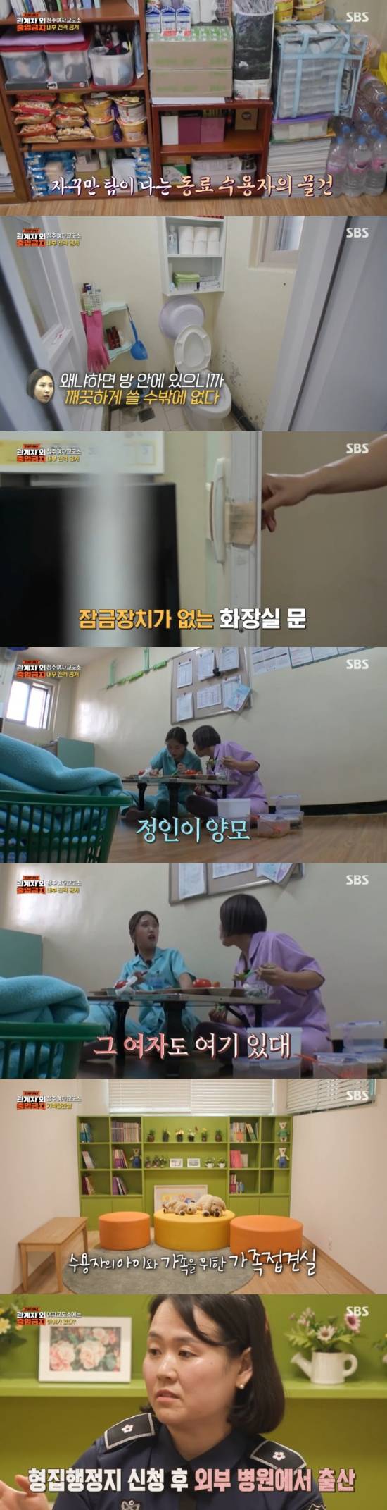 김종국은 "영화에서 보면 아이들이 있는 경우가 있지 않냐. 실제 있냐"라며 궁금해했고, 교도관은 "있다. 법에 규정이 돼 있어서 출산을 해서. (출산할 때는) 형집행정지 신청을 해서 밖에 나가서 아이를 출산하고 본인이 가족이 있으면 맡겨놓고 온다든가 하는데 보통 상황이 (아이를 맡길 가족이) 없는 경우가 많다. 여기 데려와서 키우고 싶다고 이야기하면 같이 데려와서 키운다"라며 전했다.