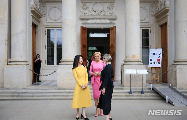 [바르샤바(폴란드)=뉴시스] 홍효식 기자 = 윤석열 대통령 부인 김건희 여사와 안제이 두다 폴란드 대통령 부인 아가타 코른하우저 두다 여사가 13일(현지시간) 바르샤바 와지엔키 궁전을 관람한 뒤 와지엔키 박물관장과 대화하고 있다. (공동취재) 2023.07.13. yesphoto@newsis.com