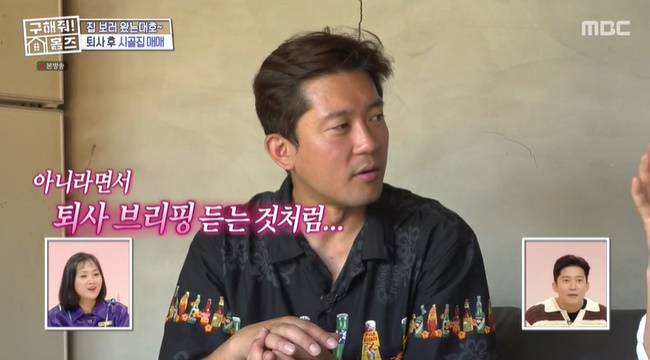 집주인이 "요즘 퇴사하니까 어때라는 얘기를 많이 한다"라고 말문을 열자, 김대호는 "진짜 어떤가. 퇴사"라고 관심을 보이다 "제가 하겠다는 이야기가 아니라"고 눈치를 살폈다.