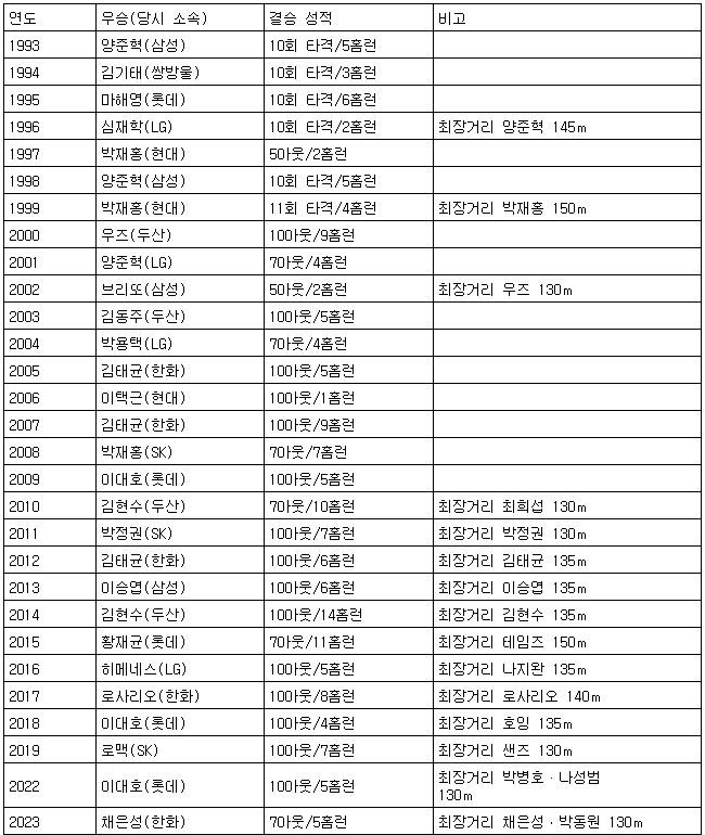 역대 올스타전 홈런레이스 우승