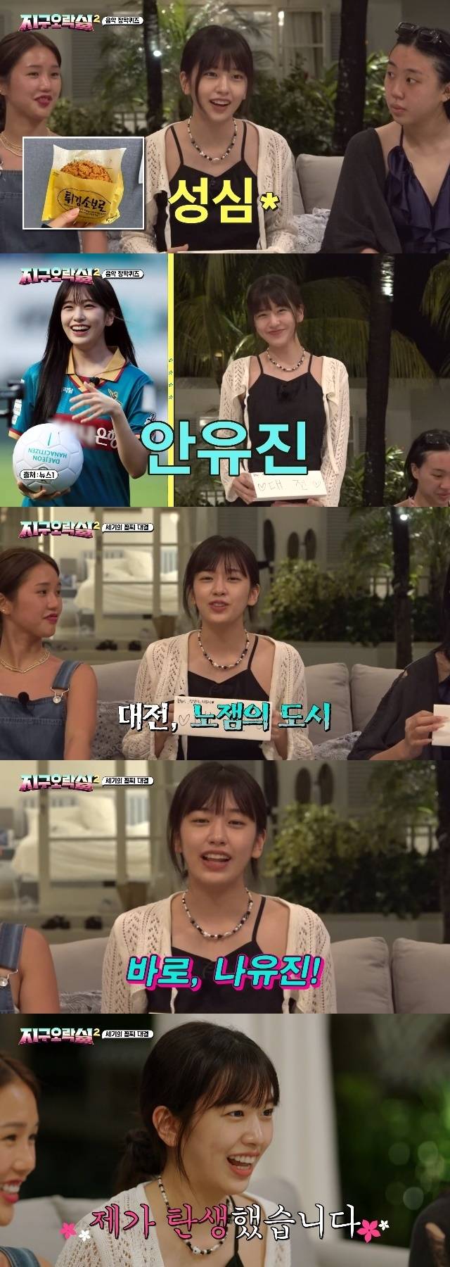 이에 이은지가 본인이 태어난 인천 김만석 산부인과, 미미가 현재 살고 있는 방배동, 이영지가 나고 자란 양천구를 적은 가운데 안유진은 "꿈돌이 성심당 그리고 바로 바로 대전의 자랑 안유진"이라며 자신의 적은 '대전'을 발표했다.