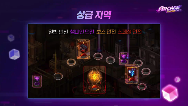 가장 먼저 상급 지역 콘텐츠를 소개했다. 던파모바일의 게임성은 유지하면서 피로감을 낮춘 신규 콘텐츠다. 피로도를 하나의 콘텐츠에 집중해서 사용할 수 있다. 상급 지역은 일반 던전, 챔피언 던전, 보스 던전, 스페셜 던전으로 구성됐다.