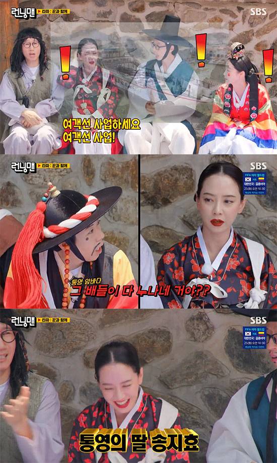 멤버마다 다양한 사극 캐릭터로 변신한 가운데, 송지효는 조선의 절세 미녀 '어우동'으로 시선을 사로 잡았다. 이에 멤버들은 "오늘 지효 진짜 진짜 예쁘다!", "미모가 참 출중하시오!"라며 감탄을 금치 못했다.