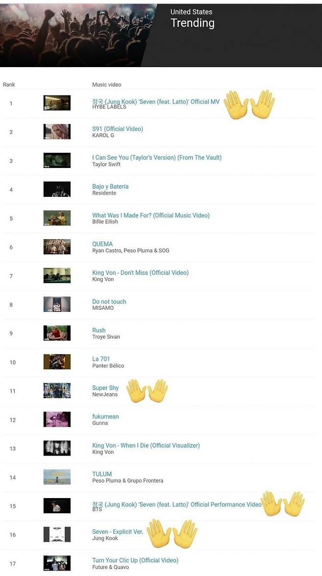 정국 팬덤에서는 “유튜브 시스템 곳곳에서는, 가령 트렌딩 차트나 온라인상에서 접근 가능한 chart raw data 등은 아직 아티스트 표기가 업데이트 된 정보로 보이지 않고 있다”면서 “유튜브 시스템상 초기 입력값이 수정되어도, 수정본이 반영되는데 시간이 걸릴 수도 있다. 주간 차트만을 운영하는 유튜브 시스템상 최초 설정값이 무조건 1주일 동안 적용될지도 모른다”고 우려를 표시했다.