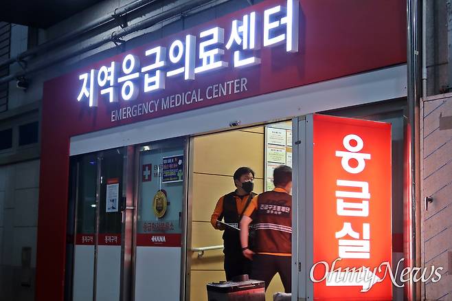 | ▲ 오송 지하차도 참사의 10번째 희생자(버스기사)가 발견된 직후인 17일 오전 2시께 희생자가 옮겨진 청주 흥덕구 하나병원에서 소방 관계자들이 분주히 움직이고 있다. |