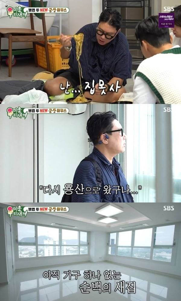 이날 이상민은 5톤 트럭 2대에 짐을 가득 싣고 파주에서 용산으로 향했다. 넓은 거실과 깔끔한 주방을 자랑하는 순백의 새집에 들어선 이상민은 "다시 돌아왔구나"라며 감회에 젖었다.