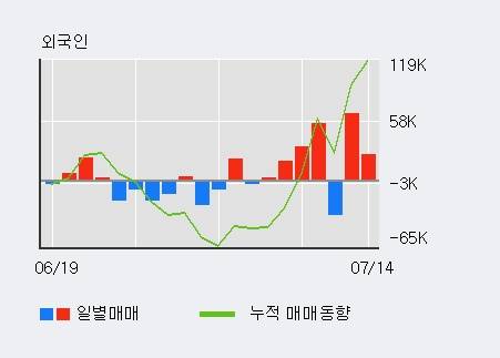지난 한달을 기준으로 보면 외국인이 11.9만주를 순매수했고, 기관도 7.7만주를 순매수했다. 반면 개인들은 17.5만주를 순매도한 것으로 나타났다. 같은 기간 이 종목의 거래비중은 외국인과 개인이 각각 16.1%, 74.7%로 비중이 높다.