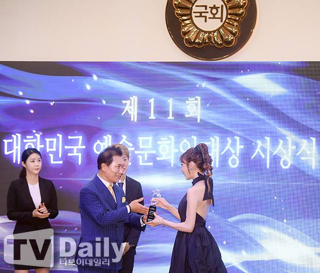 [티브이데일리 안성후 기자] 일본 모델 아스카 키라라(Kirara Asuka)가 17일 오후 서울 영등포구 국회박물관에서 열린 '2023 제11회 대한민국 예술문화인대상' 시상식에 참석해 수상을 하고 있다.